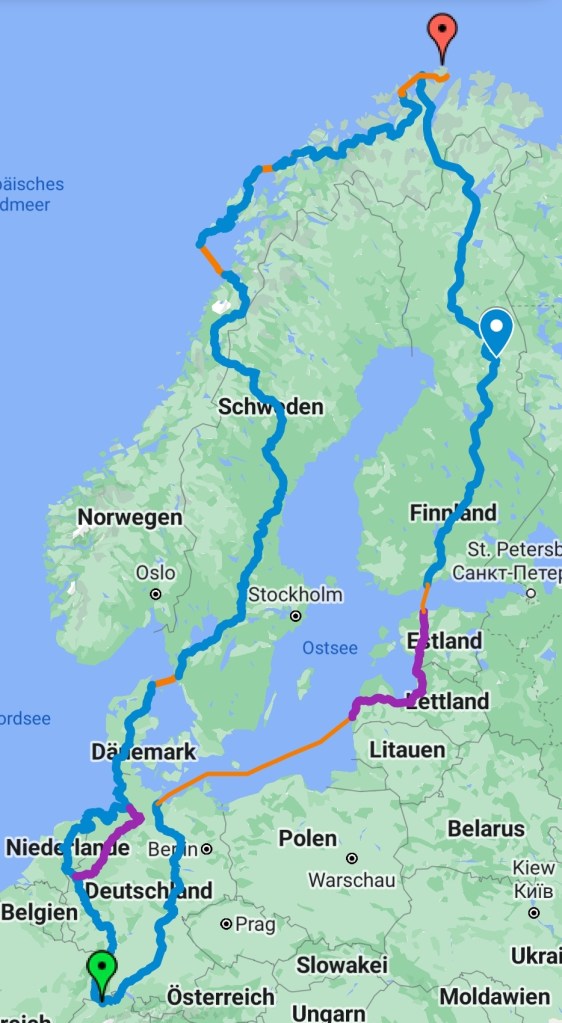 Wo es hingehen soll? Petra hat sich gewünscht ans Nordkap zu fahren und das ist nun auch unser Ziel. Geplant ist die Fahrt gegen Norden über Deutschland, Lettland, Estland und Finnland und wenn wir dann noch Lust haben über Norwegen, Schweden, Dänemark und Deutschland zurück in die Schweiz.