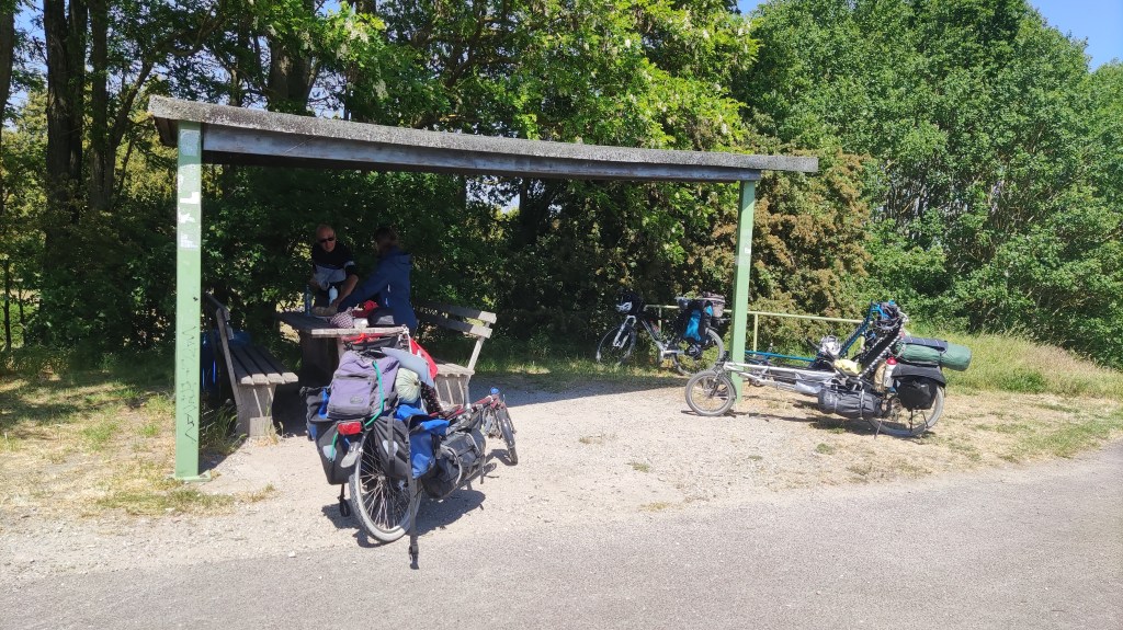 Der Weg entlang der Elbe verläuft über lange Strecken auf oder neben dem Hochwasserdamm. Jedes Mal, wenn wir wieder auf den Damm müssen, bedeutet dies eine giftige Steigung zu erklimmen. Und der Radweg wechselt alle par Kilometer von auf zu neben dem Damm und wieder zurück.