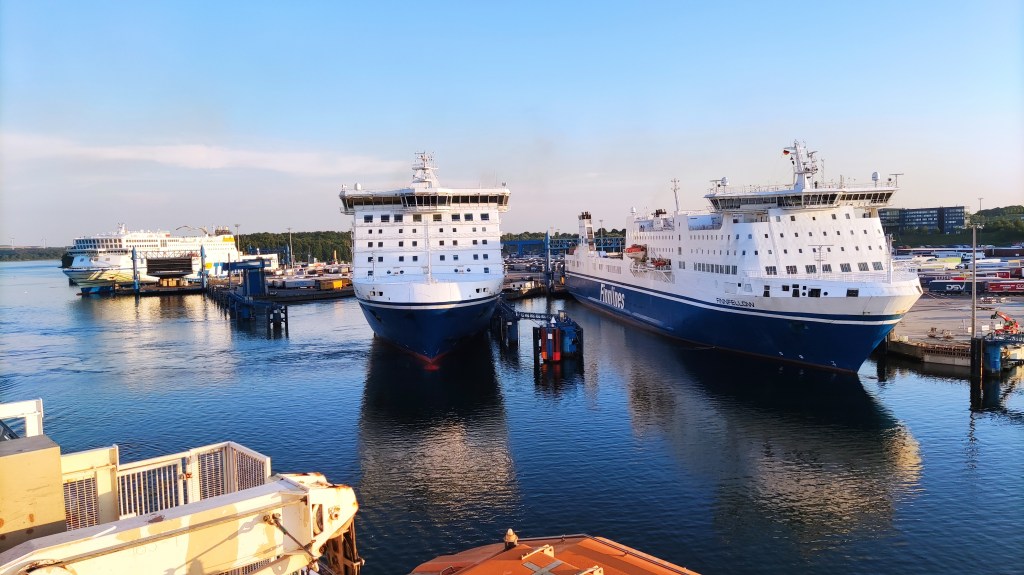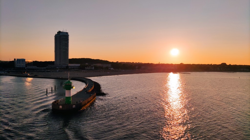 Gegen Mittag fuhren wir Richtung Travemünde Strand. Noch einmal raus zum Leuchtturm und die Strandpromenade geniessen. Auch das herumdümpeln gibt Hunger, den wir auf einer Parkbank sitzend stillen. Im Rewe wird noch eingekauft, dass wir in Liepaja nach Ankunft etwas Znacht haben. Und dann geht es ganz gemütlich ans Skandinavienkai.