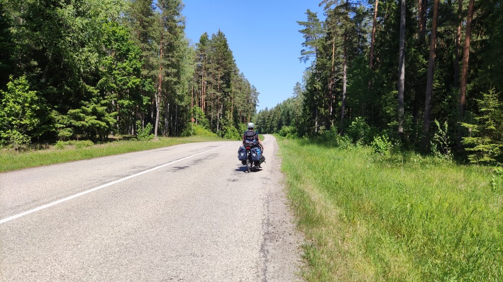 Das ständige Auf und Ab ist auch heute unser Begleiter wie der Gegenwind. Doch manchmal kommt der Gegenwind von hinten. Ein komiches Phänomen, wenn der Wind von vorne an den Ohren vorbei rauscht, man aber das Gefühl hat, es hätte sich soeben ein Motor zugeschaltet. Je nach Gelände und Bewaldung wird man so abwechselnt gebremst oder geschoben. Nach Tukums fliegen wir richtiggehend rein.