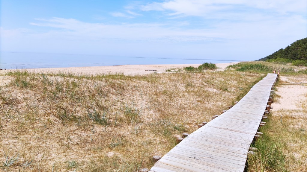 Bei der ersten Gelegenheit fahren wir zurück auf die A1. Doch oh Schreck, der Pannenstreifen ist weg. Nun heisst es mit viel Konzentration fahren. Kommen Lastwagen schwenken wir auf den Kies neben der Strasse. Zum Glück ist der Verkehr gegen Norden nicht so dicht wie gegen Süden. Dann vor Salacgriva taucht die alte Strasse auf, mal links dann rechts führt sie über einige Kilometer parallel zur neuen A1. Eine Freude für uns, wenn auch der Wechsel zwischen A1 und alter Strasse teilweise herausfordernd ist.