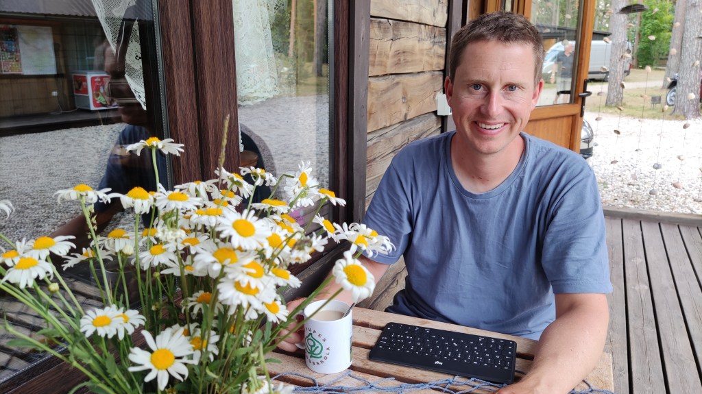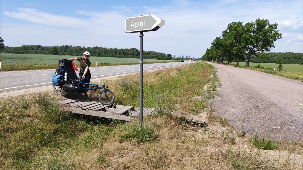 In Jelgvkrasti versuchen wir es trotzdem, dem Autolärm etwas auszuweichen. Mit wenig Erfolg. Wieder kämpfen wir mit Sand und weichem Kies und brauchen für die 6 km gleich lang, wie wir für die vorherigen 20 gebraucht hatten. Wir sind uns einig, hier hat alles was wenig Verkehr hat auch wenig Teer. Oder eben gar keinen. Die Autofahrer geben sich teilweise Mühe, uns nicht in eine Staubwolke zu hüllen, aber nur mit geringem Erfolg. Witzig ist, dass vor jedem Haus ein kurzer Abschnitt der Strasse gewässert ist. Für uns eine Erholungsphase, für die Bewohner etwas Staubschutz.