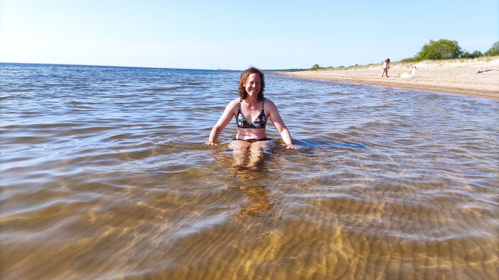 Eine andere Freude ist der Camping Milleri. Sehr schön hergerichtet, mit viel Liebe zum Detail dekoriert und gut ausgestattet. Trotz des Sandexperiments von heute sind wir früh da. So reicht es noch für einen Abstecher an den Strand und für Petra ein Bad im Meer. Blog geschrieben wird heute auf der Veranda des Küchenhäuschens und ein Glace hat es auch noch gegeben. Uns geht es richtig gut.